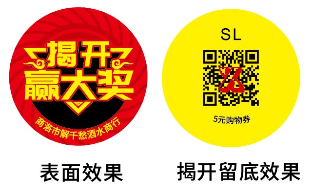 纸质揭开防伪标签是一种双层的防伪标签,表面,可印制企业名称、产品Logo、产品真伪查询方法等信息,标签表面没有防伪密码,顾客进行防伪查询前需将标签表层揭开,其粘在产品包装上那部分胶上就有相应的密码。