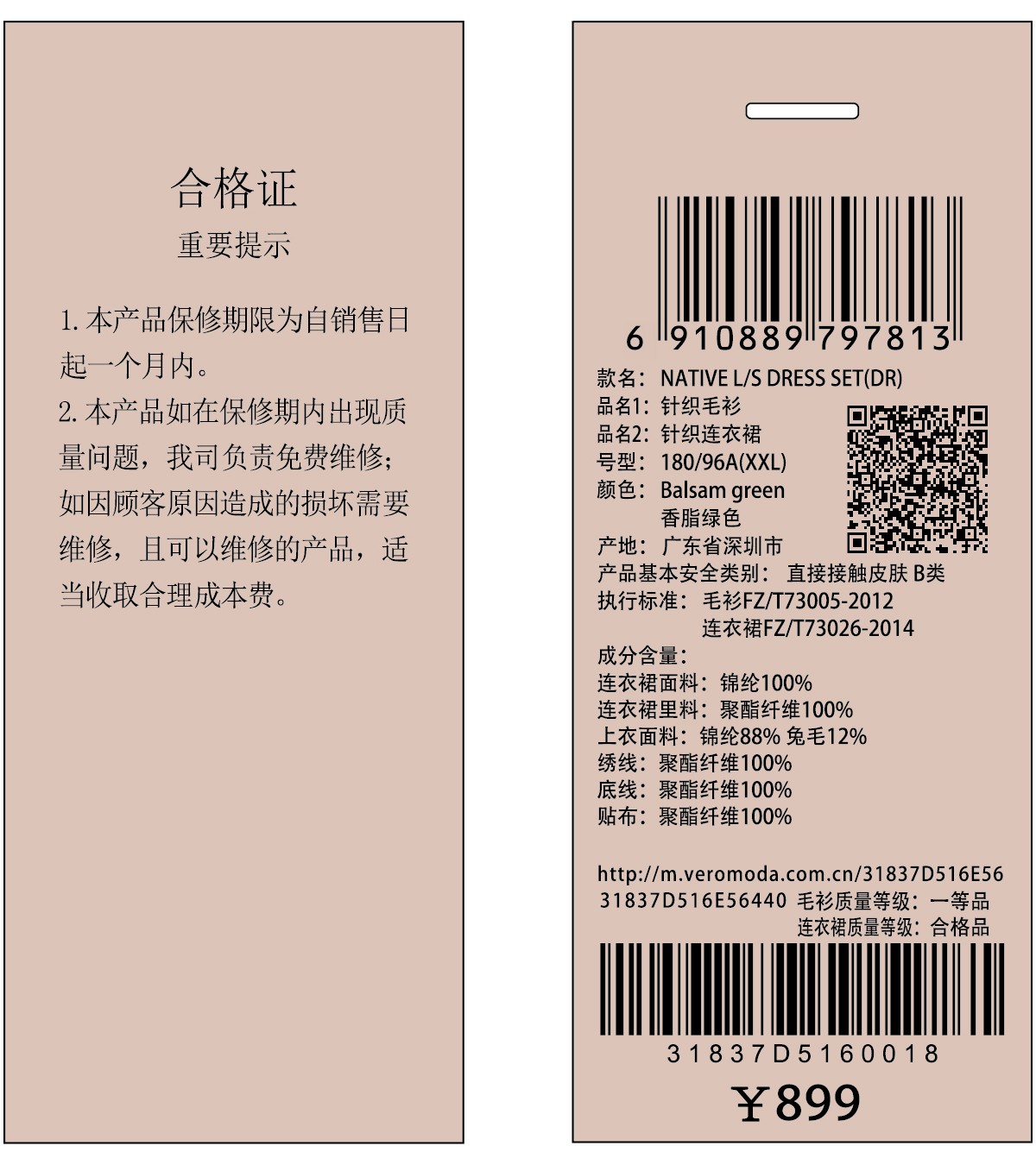服装吊牌和永久性标签是服装的组成部分之一,它既代表了品牌特征,是品牌识别的有效载体,也是品牌向消费者给出的承诺。随着人们对服装穿着舒适性、安全性及功能性要求的提高,吊牌所涵盖的内容将愈来愈多。当然,它还承担着说明、指导的功能,如成分含量、洗涤指导等。因此,标牌和标签的规范化是实施服装行业发展与国际接轨的直接表现。企业必须重视服装吊牌和标签的规范使用,才能保持整个行业的健康发展。
